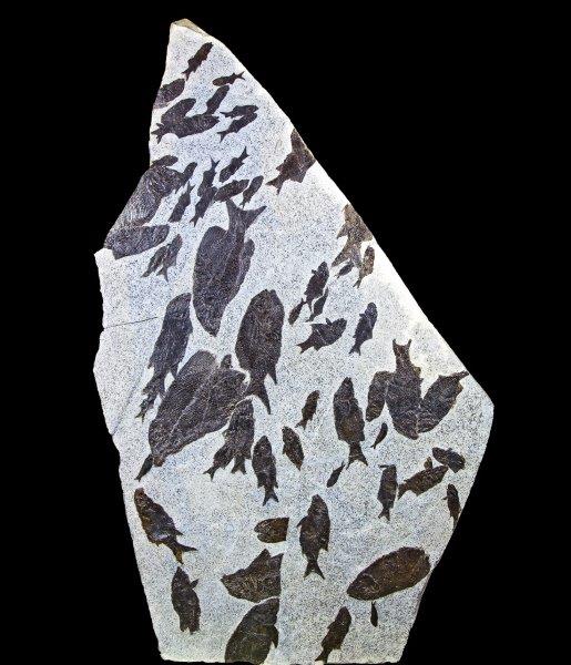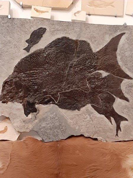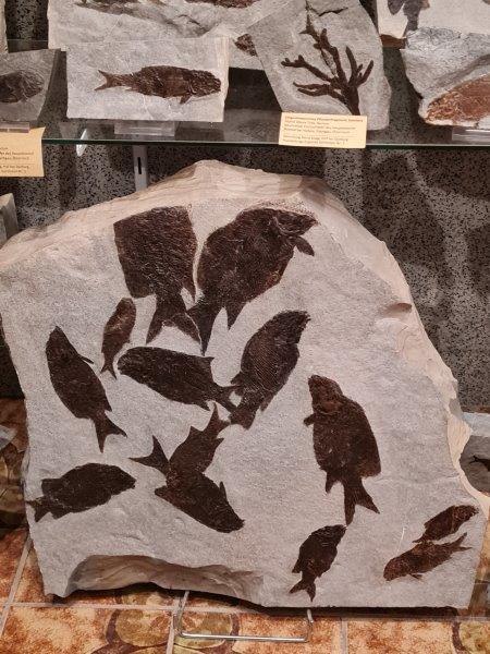 Obertriadische Fischfauna von Hallein ( Wiestal ).Alter ca. 220 Millionen Jahre.Die Schichten bestehen aus bituminösen, lagunären Mergel.